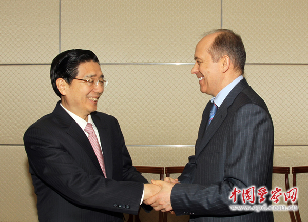图为国务委员郭声琨与俄罗斯联邦警卫总局局长穆罗夫举行会谈。 人民公安报中国警察网记者 张建鑫 摄