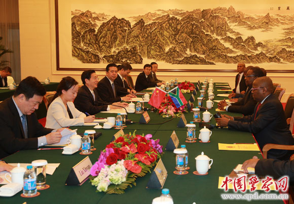中国警察网北京4月27日电 记者周栋梁报道:国务委员、公安部部长郭声琨与南非警察部部长恩莱科27日在京举行中国公安部与南非警察部部级年度互访机制第一次会晤。 郭声琨指出,两年多来,习近平主席和祖马总统成功互访,就中南关系发展作出重要战略规划。中方愿与南方共同努力,积极落实两国元首达成的共识,进一步加强务实合作,不断充实两国全面战略合作伙伴关系内涵。 郭声琨表示,中国公安部与南非警察部有着良好的合作关系,希望双方充分利用两部年度互访机制,进一步加强各层级交往和业务交流,不断深化在打击跨国犯罪、毒品犯罪及追逃追赃等领域的务实合作,为两国经贸发展和人员往来创造良好环境。中方关注前不久南非发生的排外骚乱事件,希望南方继续采取有力措施保护在南中国公民、机构的安全和合法权益。 恩莱科表示,南非政府高度重视发展对华关系,南非警察部愿与中国公安部深化交流合作,不断提升执法安全合作水平。 公安部副部长孟宏伟参加会晤。 |