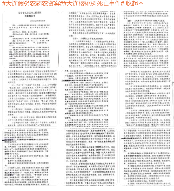 @最高人民法院 @最高人民检察院 @辽宁高院 @辽宁检察 @人民法院报 @大连市中级人民法院 #大连假劣农药农资案##大连樱桃树死亡事件# 收起d