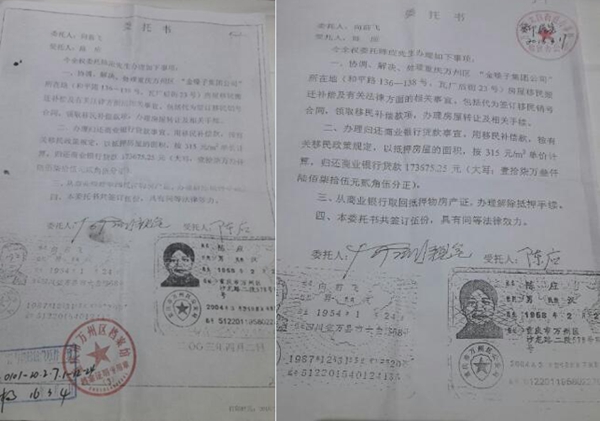 “三峡工程”功在当代利在千秋,我们大力支持国家建设。但是在移民安置过程中我们遭受到十分不公平的待遇。万州金嗓子实业有限公司当时是十分红火的企业,因为移民搬迁,企业损失十分惨重,不得不破产、倒闭。面对企业的惨状,我们一蹶不振,心灰意冷,只得远走他乡,远离这块伤心之地,到四川都江堰过上与世无争的生活,公司在移民搬迁中存在的问题就交给公司员工陈应处理。由于我们两个孩子相继读书,我夫妻二人又没有稳定收入,生活逐渐难以为继,于是想起了安置在双河口的门面房,打算卖掉部分门面房维持生活。当我们带着买家到太白街道移民办咨询房产证办理的相关情况时,工作人员把我们公司移民档案资料呈现在我们面前时,我们发现了触目惊心、令人发指的问题。