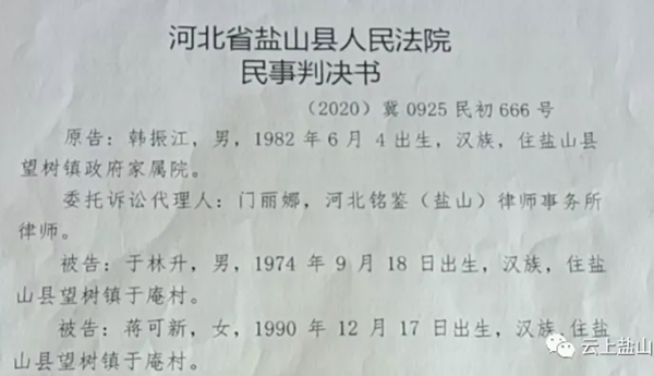 于林升他们以为此案到此为止了,可是,2020年5月20日,盐山法院下发的传票再次送达,韩振江再次以合伙垫资20万元提起了起诉。