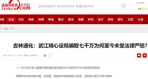 ——关于武江等人套路诈骗巨额资金和通化市公安机关不作为的实名举报信