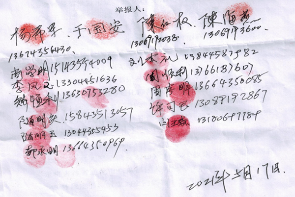 以下是实名举报村民签名: