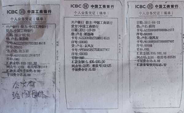 图片为袁凤友敲诈勒索的汇款证据