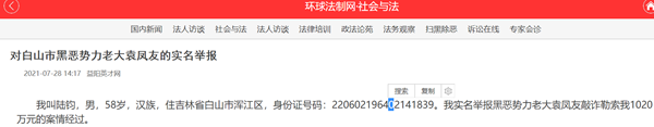 原标题:对白山市黑恶势力老大袁凤友的实名举报