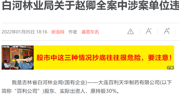 我是吉林省白河林业局(国有企业)——大连百利天华制药有限公司(以下简称“百利公司”)股东、实际出资人,原持股30%。