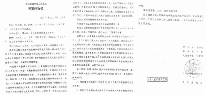 以下证据可以证明,在法官违规操作下,刘红红利用虚假诉讼程序达到了非法转让股权侵吞公司资产的目的: