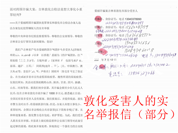 ——关于晏丽跨国诈骗团伙犯罪事实和敦化市公检法办案人违法办案包庇犯罪嫌疑人的实名举报