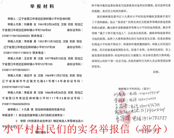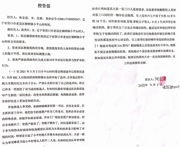 ——关于辽宁省营口市老边区柳树镇小平山村村主任曲秀红的控告信