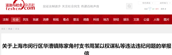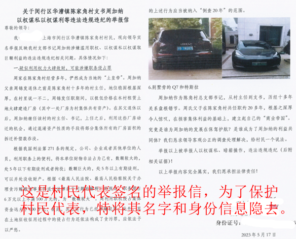 关于上海市闵行区华漕镇陈家角村支书周某以权谋私等违法违纪问题的举报信