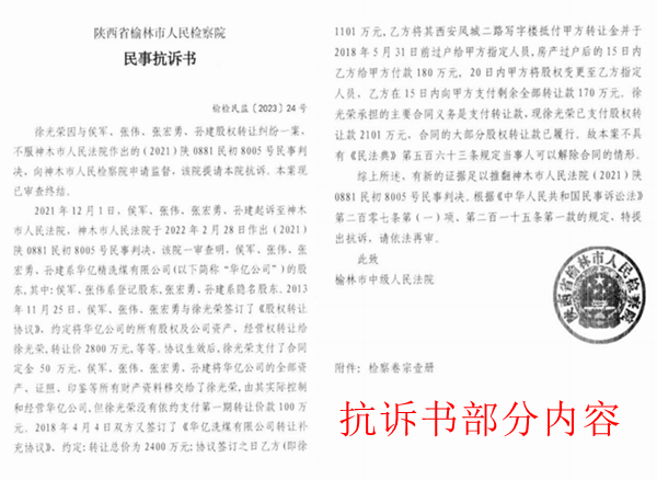 哪里有欺压,哪里就有反抗!徐光荣四处投诉、控告、检举无果,不得已申诉到榆林市人民检察院,案件终于迎来了转机。该院在接到徐光荣的《监督申请书后》,仔细调研了相关案情,提取证据,并于2023年10月30日出具榆检民监(2023)第24号《民事抗诉书》,认为:“2018年5月31日前,徐光荣已经将抵债房屋过户给了张伟、侯军、张宏勇、孙建,本案也不属于《民法典》563条规定的当事人可以解除合同的情形。神木市人民法院2021陕0881民初8005号民事判决书认定事实错误,提出抗诉,依法再审”。本案将于2023年11月21日在神木市法院另行组庭重审,届时孰是孰非,或可水落石出,真正的还受害人一个公道!