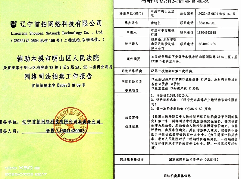 赵紫涵于2022年8月11日接到辽宁元宗房地产土地评估公司的评估报告,然后就是2022年11月19日接到明山区法院的执行裁定,就是这两处房产经过二拍无果的情况下以7495320元的价格被本溪禾丰村镇银行股份有限公司以物抵债了,这三个多月的时间里发生了什么⁉省略了什么⁉赵紫涵本人及赵紫涵的代理人对拍卖竟然一无所知。