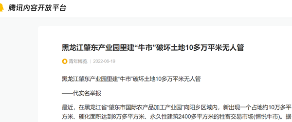 黑龙江肇东产业园里建“牛市”破坏土地10多万平米无人管