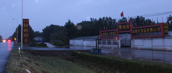 “恒悦牛市”大门对面一道之隔就是肇东市金园烟花爆竹仓库,烟花爆竹仓库囤有大量易燃易爆物品,恒悦牛市交易时每天都得进出上千人和上千辆机动车,这些人在门口随手扔掉的一个烟头和车辆排除的火花随时都可能引起对面烟花爆竹仓库的爆炸,造成不可估量的后果,同时附近0.9公里内还有一家军工企业,严重威胁军工企业的安全。