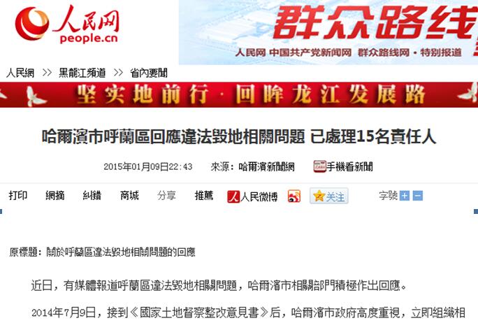 哈尔滨呼兰区12名官员被查 或与土地违规流转有关