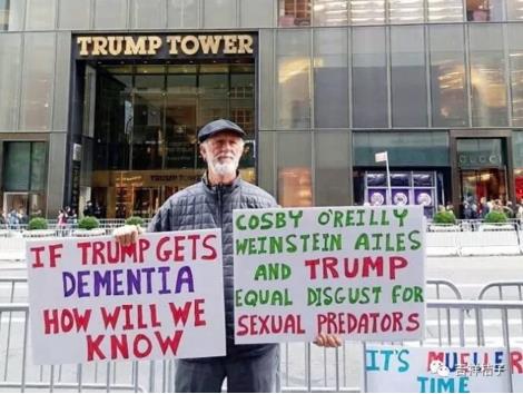我走近他,朝他手上和身边的标牌望去,只见上面写满了痛骂川普的文字:无知、无能、疯子、老年痴呆……举牌者任潮水般的人流涌过,坦然自若,任人拍摄。