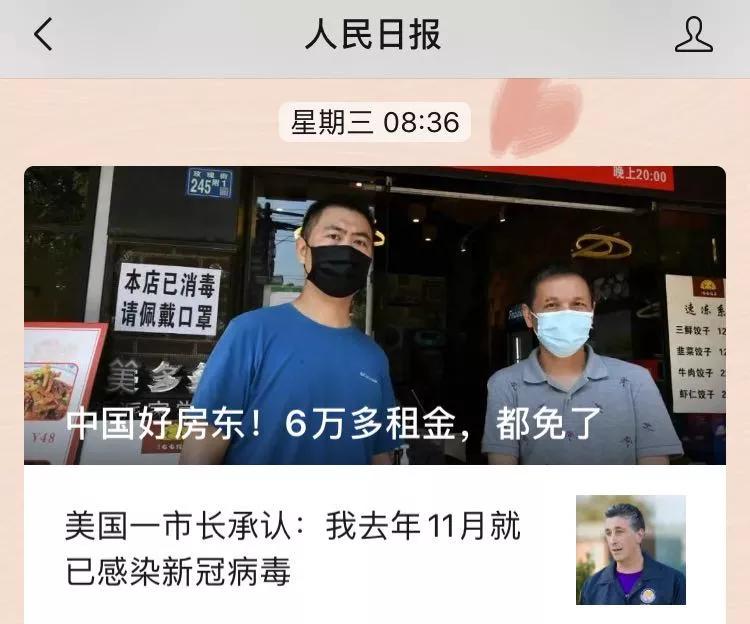 5月6日,节后第一天上班。刚到办公室,就刷到了《人民日报》转发自长江融媒(长江日报官方新闻采编app)的新闻:《中国好房东!6万多租金,都免了》。