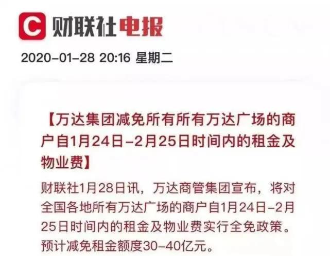 干事以为,他们减免门面租金,一是之前赚得盆满钵满(不用解释中国的房企的赚钱能力吧?),有底气;二是让租赁方早日恢复生意和人气,避免涸泽而鱼,可称双赢;三是,客观上也算给自己做个广告宣传吧?