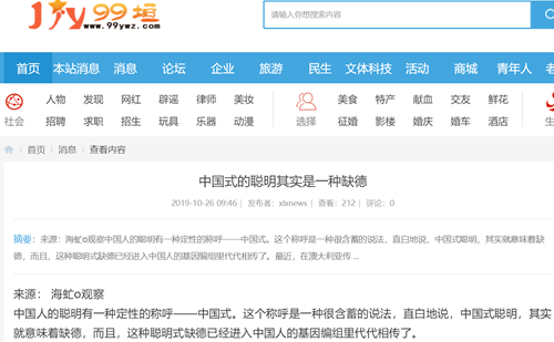 来源:海虻o观察 中国人的聪明有一种定性的称呼——中国式。这个称呼是一种很含蓄的说法,直白地说,中国式聪明,其实就意味着缺德,而且,这种聪明式缺德已经进入中国人的基因编组里代代相传了。