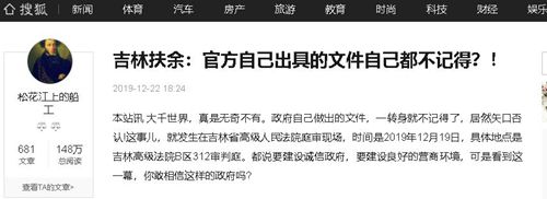 本站讯 大千世界,真是无奇不有。政府自己做出的文件,一转身就不记得了,居然矢口否认!这事儿,就发生在吉林省高级人民法院庭审现场,时间是2019年12月19日,具体地点是吉林高级法院B区312审判庭。都说要建设诚信政府,要建设良好的营商环境,可是看到这一幕,你敢相信这样的政府吗?