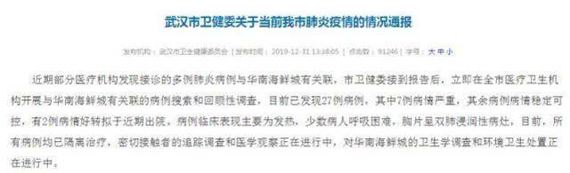 2019年12月30日,武汉市“不明原因肺炎”首次出现在公众视野。时隔一天,武汉市卫健委首次发布肺炎疫情的情况通报。