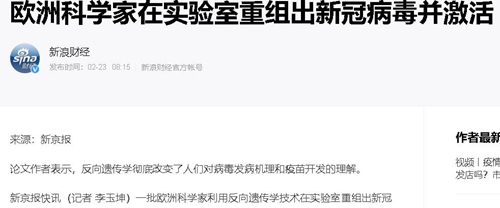 新京报快讯(记者 李玉坤)一批欧洲科学家利用反向遗传学技术在实验室重组出新冠病毒。