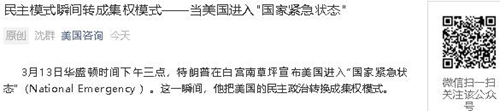 民主模式瞬间转成集权模式——当美国进入"国家紧急状态"