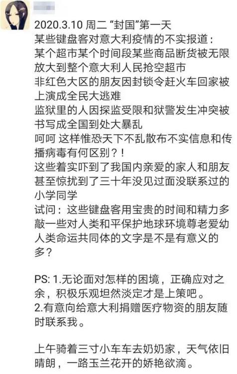 作为一个在意大利而且是在现在中国网友都已经耳熟能详的伦巴第大区生活过23年的人, 这几天真的觉得累坏了!每天至少有十几个人拿着各种视频,截图,聊天记录,来问我这是不是真的,意大利是不是变成地狱了?有的朋友孩子在意大利留学,怕孩子是太懂事不想让家里担心,也拿着那些消息来问我, 有的当妈妈的都快急得抑郁症了, 还有的问是不是要给那边的孩子快递生活物资。可怜天下父母心, 今天就跟大家聊聊意大利到底有多乱这个话题。