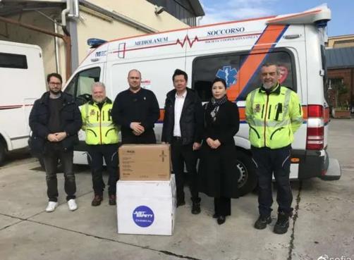 甚至米兰救护车队前些天都没有防护服和口罩,他们还要每天东奔西走接送病人。意大利青田总商会、意大利北部丽水同乡会听到这个消息,专门给他们捐赠了物资。米兰救护车队为此专门登报感谢。上图就是捐赠的场景。很多人问我图中的人怎么不戴口罩, 前期口罩紧张,意大利政府呼吁把口罩留给医护和患者,健康人不要戴,所以当时大家都没戴。现在意大利的舆论导向也变了,戴口罩的也比原来多了,但很多人买不到。