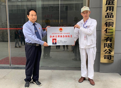 本站讯 5月13日,贵州省玉屏侗族自治县人民检察院党组成员、副检察长黄长河来到位于该县双桥工业园的伟建家庭用品(铜仁)有限公司挂牌,成为该院派驻伟建公司的法律服务联络员,为企业提供法律服务,帮助企业解决困难,助力企业复工复产。