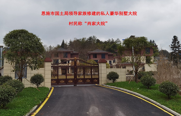 在恩施市莲花池村有一处占地约10亩的私人豪华别墅大院,附近村民称之为“肖家大院”,设计装修十分豪华,设立有门岗,院内地面铺设有沥青,路灯、绿化树木、停车位一应俱全。