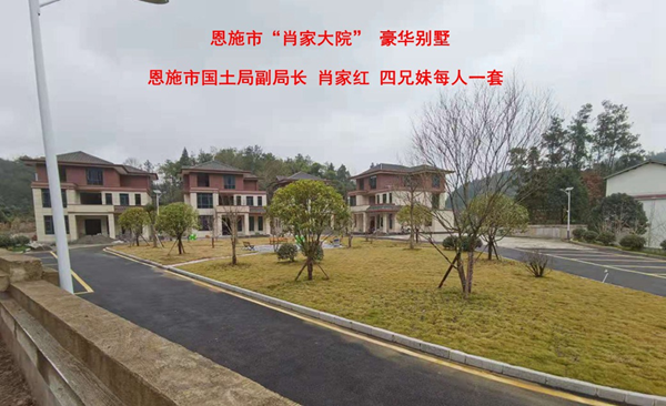 村民称,院内的四栋豪华别墅分别是由该局副局长肖家红等四兄妹所有,他们是巴东县人,与本村没任何关联,都在相关政府单位上班,别墅现在正进行内部装修,其中老大肖家魁以前是恩施市的副市长,在任恩施州畜牧局长的期间(2016年)因违法违纪被撤职判刑。