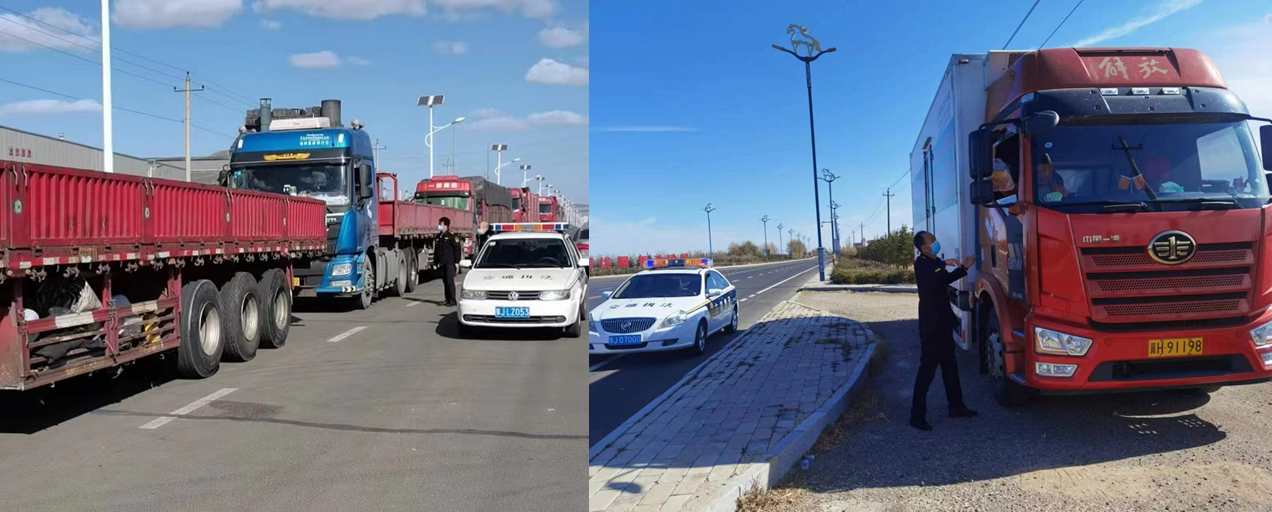 与此同时,交通运输执法大队共派出3个中队10名执法人员加大对全旗道路的巡查力度。在巡查过程中,如发现任何道路安全隐患时,公路养护中心便会迅疾开展抢修恢复工作,第一时间把道路安全隐患消除在萌芽状态,从而确保疫情处置人员、防治药品器械等应急物资的运送畅通。在为工业园区货运车辆疏导交通,协助园区维持秩序的日常道路巡查中,发现部分滞留车辆,由于长途奔波,食物、饮水等生活物品消耗殆尽,难以为继时,巡查人员便主动为这些货车司机及时送去热水、食物等,帮他们解决燃眉之急,渡过难关,并不厌其烦地对这些货运司机强调,要时刻绷紧疫情防控的弦,严格遭受疫情防控要求,从源头上彻底消除疫情感染风险。