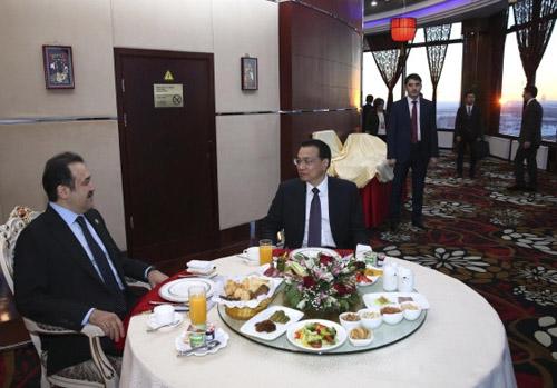 两杯橙汁、几片面包、一份沙拉——2014年12月15日,在哈萨克斯坦首都阿斯塔纳,一顿看似寻常的早餐正在进行。只不过,餐桌旁坐着的是中国总理李克强和哈总理马西莫夫。