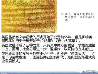 人们只要回顾一下英国的历史,就会看到从诺克斯到梅尔维尔,再到卢塞福,直至洛克,始终贯穿着加尔文主义的自由观和政治观,对王权进行限制。1644年,卢塞福出版了《法律为王》的著作,主张国王永远在上帝的律法和人民的契约之下。他写道:“人民在上帝之下,显然保留着政体的权力来源。因为他们同意授予国王的权力是有限的,人民被允许保留的权力相对于国王则是无限的,并且约束和限制国王。因此,与人民的权力相比,国王的权力更小。”看到这些话,我们不难理解英国最后走上君主立宪道路的宗教信仰的原因。英国长期没有成文宪法,却能有很好的憲政制度,这不能不是说是基督信仰自发扩张的产物,从《自由大宪章》、《大抗议书》、《权利法案》等一系列政治文件中,我们可以看到英国宪政制度在基督文化的基础上自发扩张的历史过程。