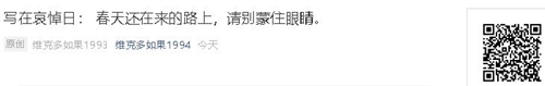 写在哀悼日: 春天还在来的路上,请别蒙住眼睛