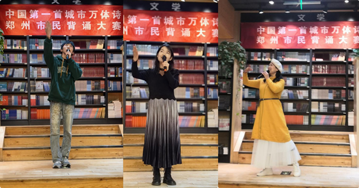 来自全市各行业、各学校的老中青少参赛选手欢聚一堂,先后登台,用各自不同的朗诵风格和表演情绪,生动演绎中国第一首城市万体诗——《郑州景象“万”素描》。